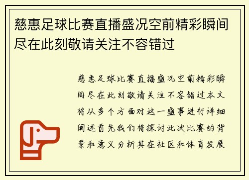 慈惠足球比赛直播盛况空前精彩瞬间尽在此刻敬请关注不容错过